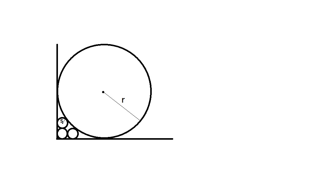 三個半徑為s的圓畫在xy平面的第一象限. 第一個圓與x軸、y軸相切, 第二個圓與第一個圓及x軸相切, 第三個圓與第一個圓及y軸相切. 另一個半徑為r (r>s)的圓與兩軸、第二個圓及第三個圓相切. 試問r/s之值為何?