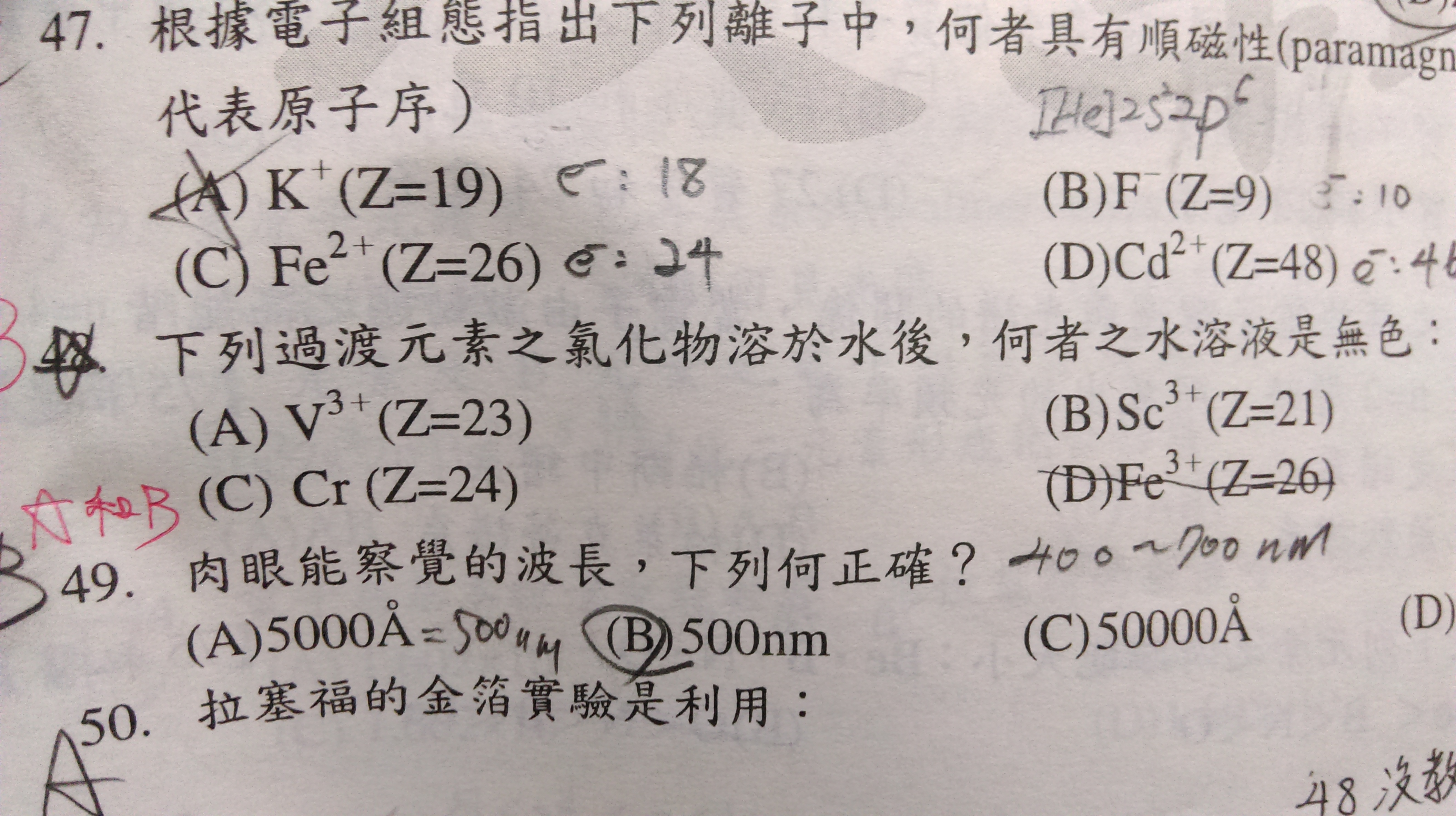 老師~第48題不懂....他為何強調氯化物....和答案有關嗎?????