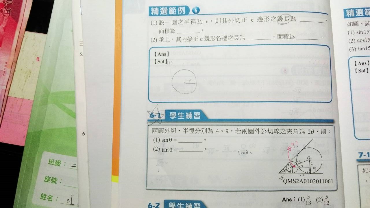 請問6-1解答寫紅色那個角(O