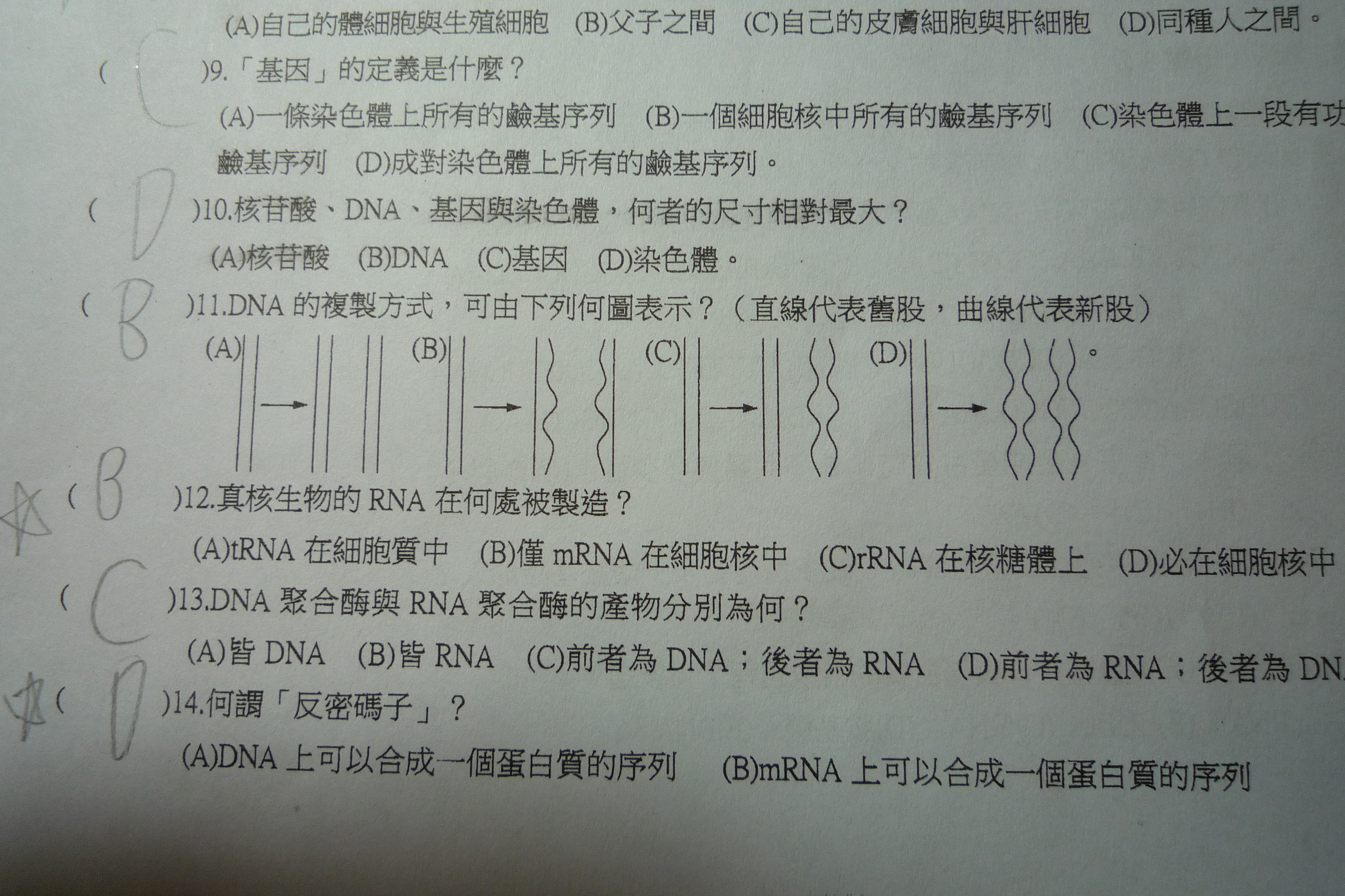 請問第12 題?我想知道tRNA是否在細胞核中製造?