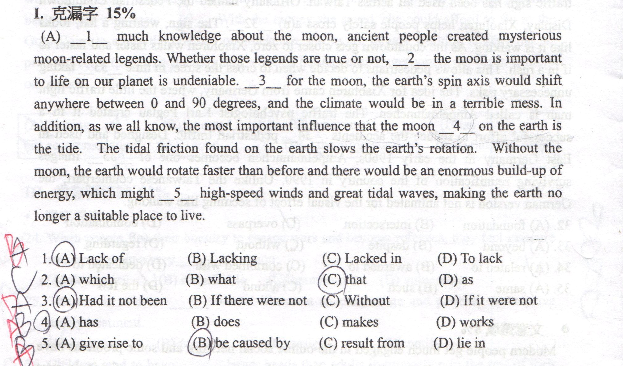 這部分的克漏字要怎麼選啊!