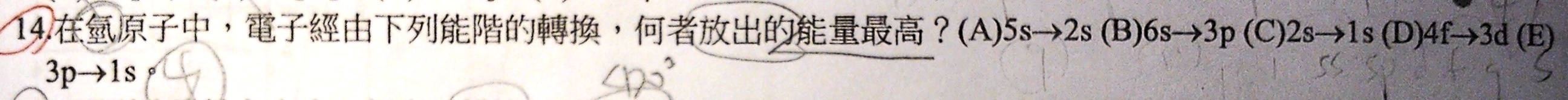 這題目好奇怪,記得單原子的能階數字一樣的能量相同,我在當時認為只要把能階照順序列出來就可以知道了,但好像不對耶,這個觀念是對的嗎?如果不行這麼做的話那我應該還要想到哪些觀念呢?
