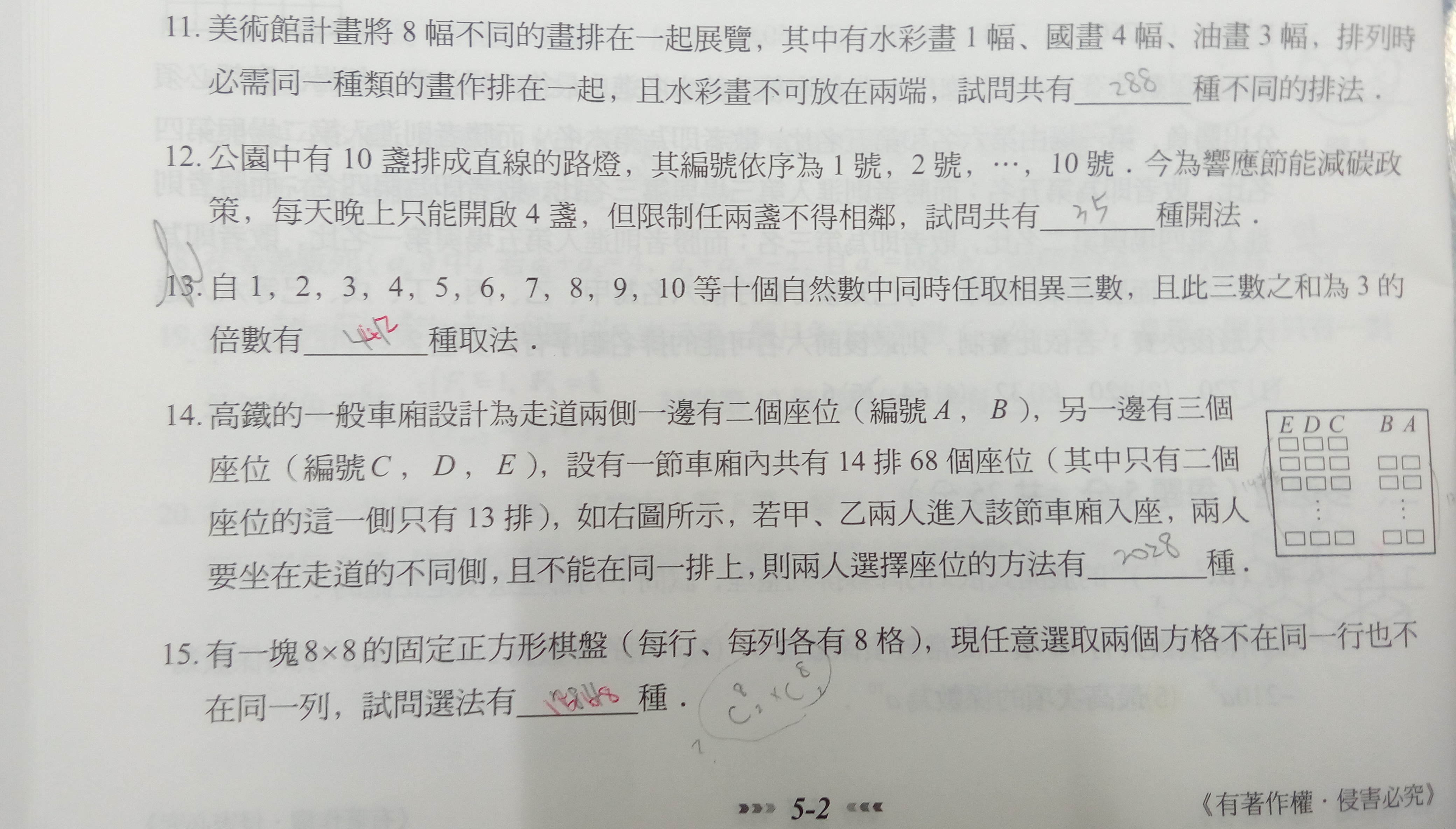 第15題為什麼不可以C8取2+C8取2....(每行取2格,每列取兩格)???