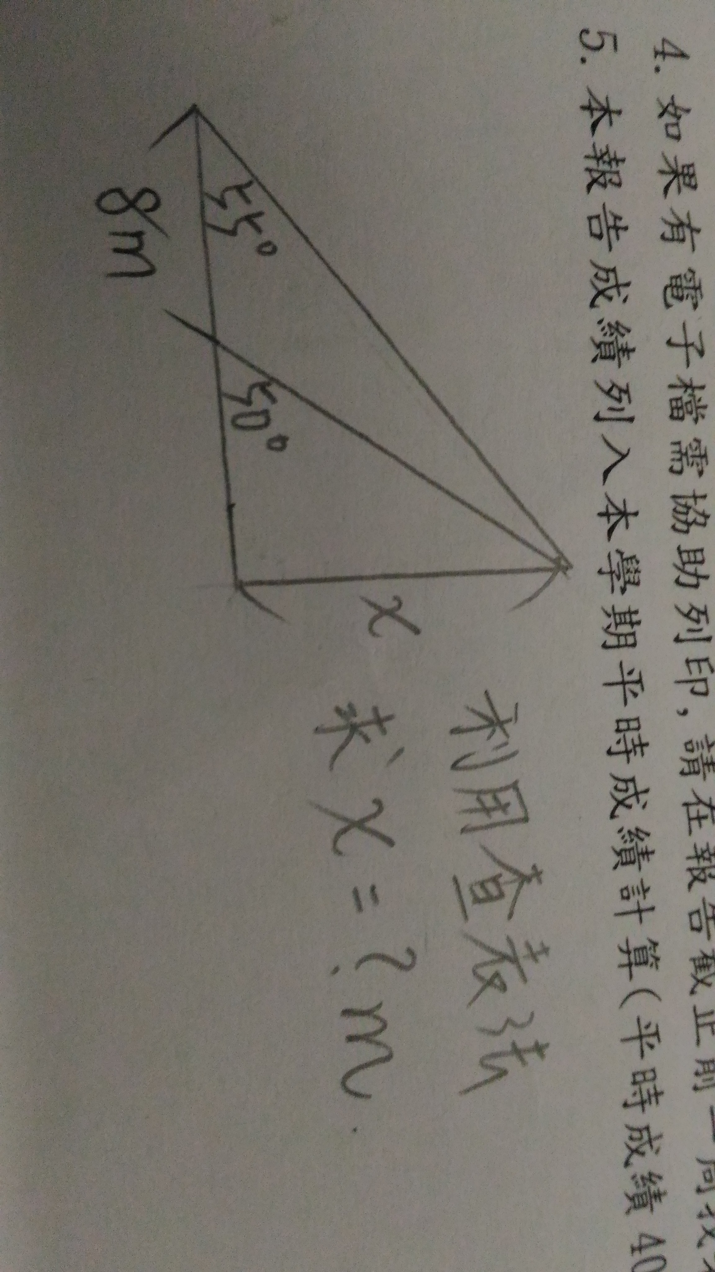 求X的值(要用三角函數和查表法)