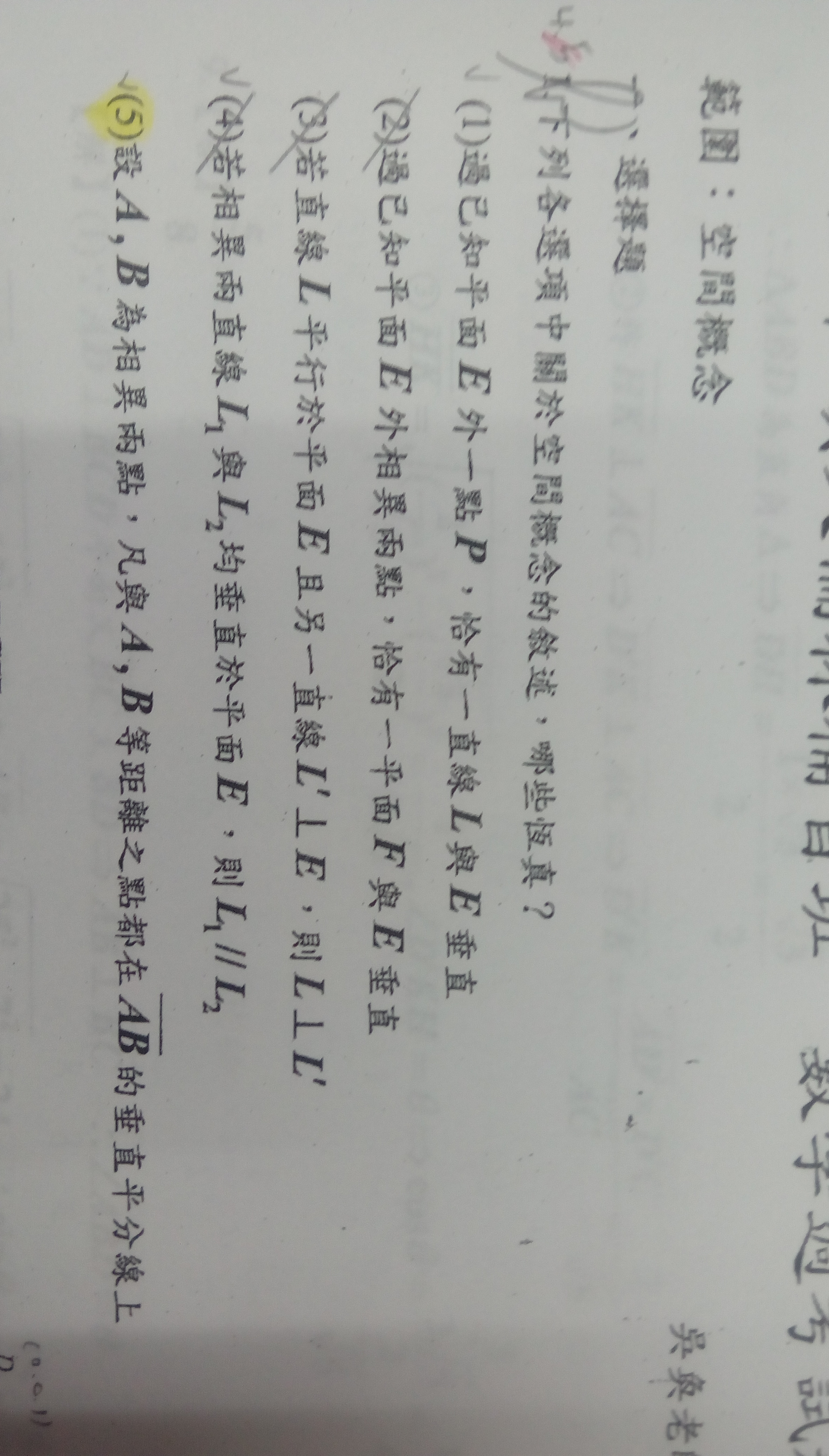 第5個選項....雖然是垂直平分面,但也是在垂直平分線上呀,為什麼不可以選???