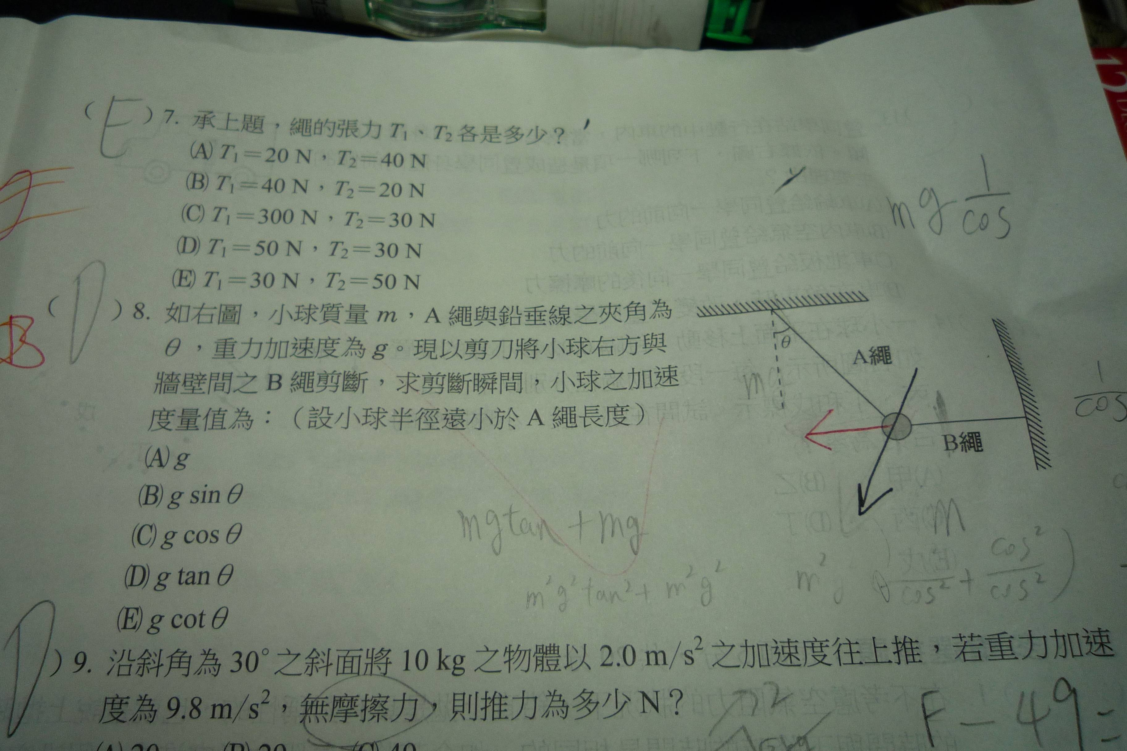 請問第八題:B繩斷了之後,合力不是紅線方向嗎?請問為甚麼球是做黑線方向的圓周運動?