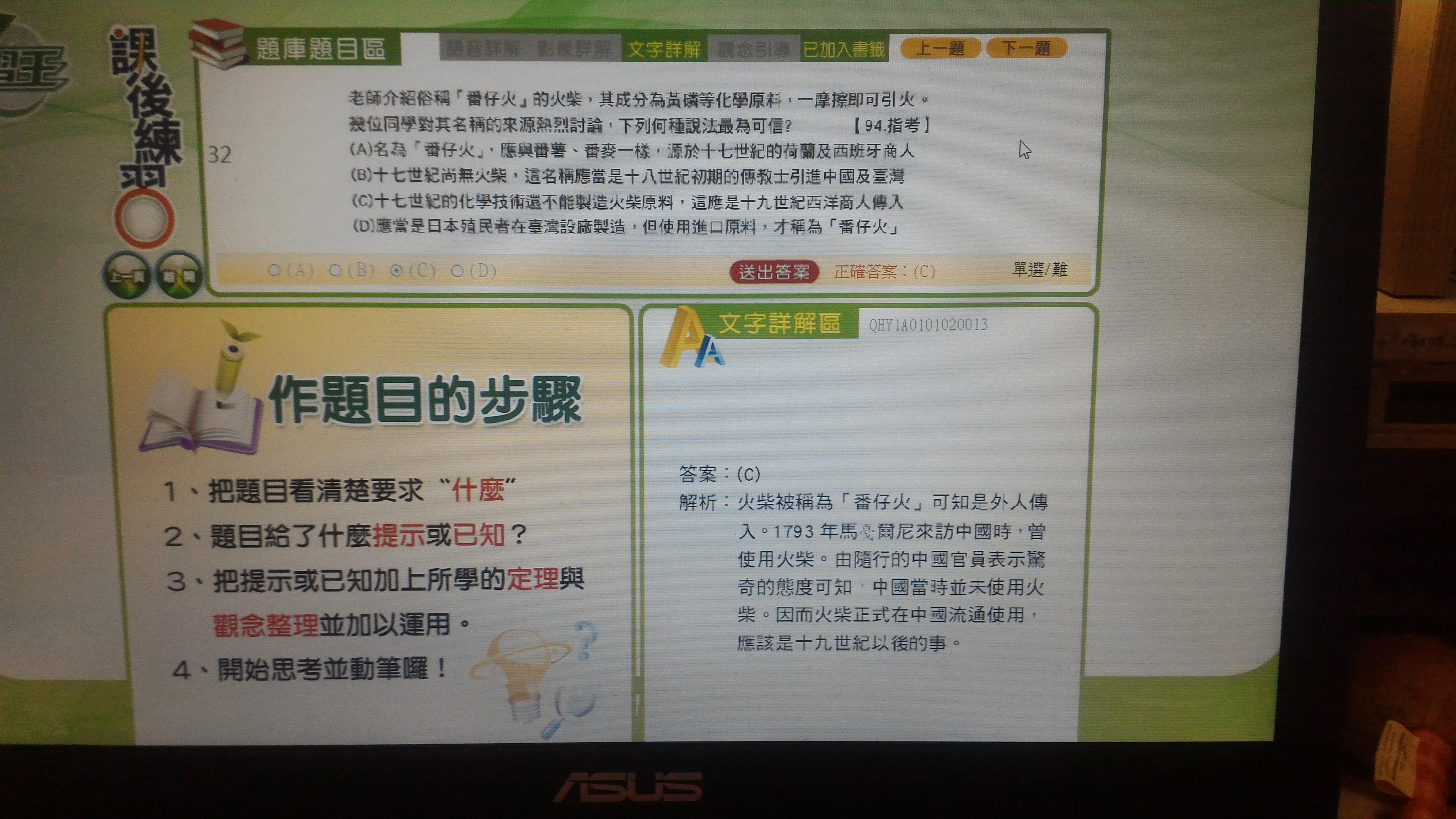 此題可以詳細分析「番仔火」這個火柴嗎?此題如何解題??A選項曾聽老師說番XX,通常都是來自荷治時期所以我選了A選項..