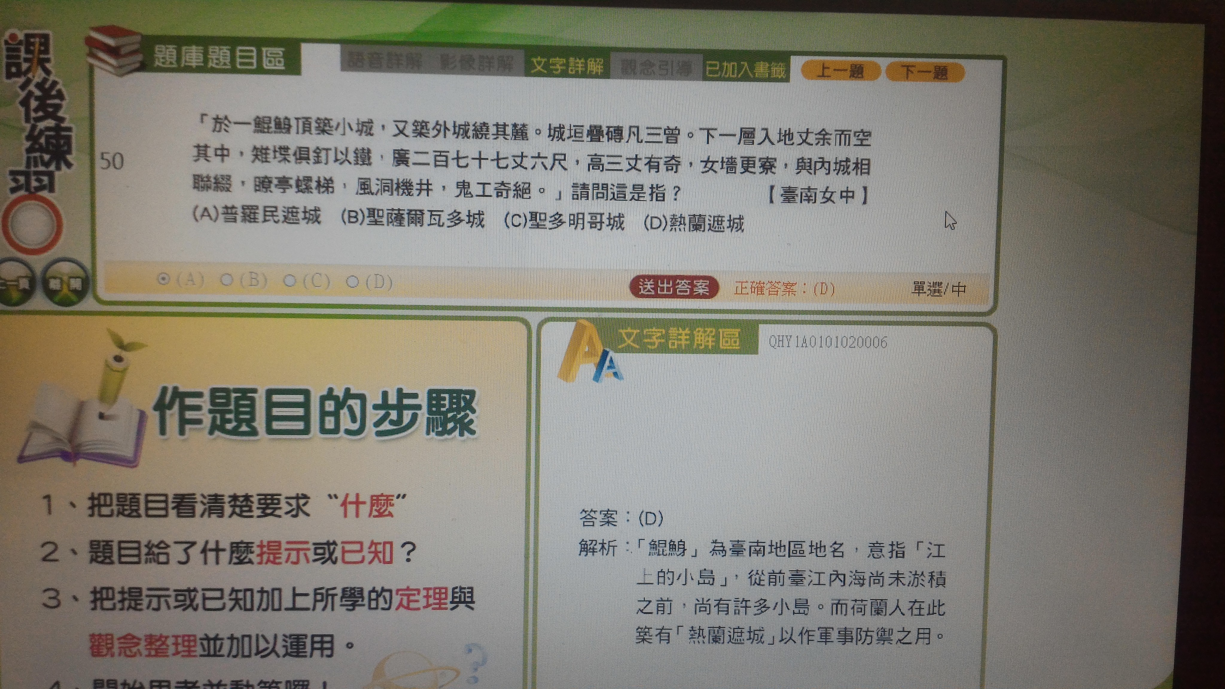 為何此題所說的是熱蘭遮城呢?普羅民遮城同樣也是位於台南呀??