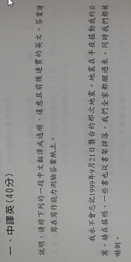 I won’t never forget the earthquake which hit Taiwan at twenty-first September 1999. The earthquake hit my department at midnight. Walls were shaking, and some books were falling down. My whole family woke up, and we were all shocked at the same time.