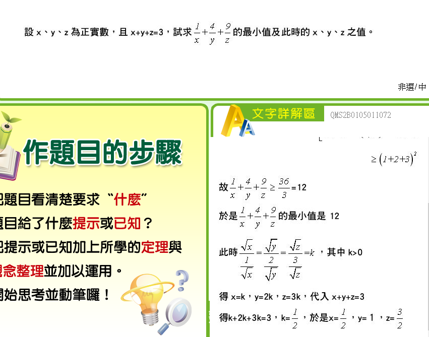 每次發問解題以一題為限,請標示解題題號,若無標示則以畫面第一題為準,若有多題題目發問,請另行發問。