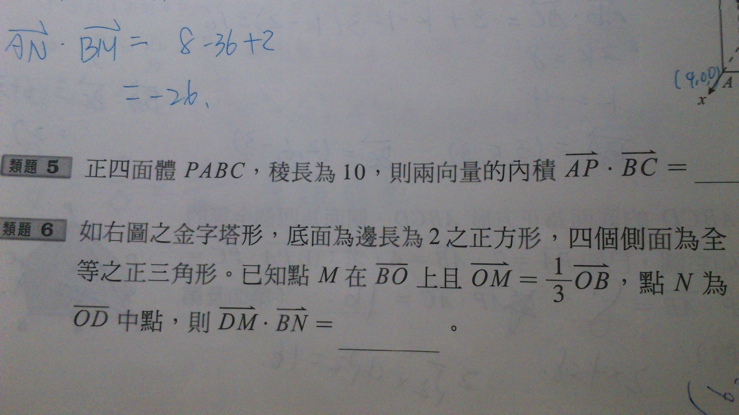 類題6.題目上有說OM向量=1/3OB向量,點N為OD終點,那我ON向量可不可以直接用1帶入?如果可以,可以請老師寫完整的向量分解和用數字帶入的嗎?感恩:))