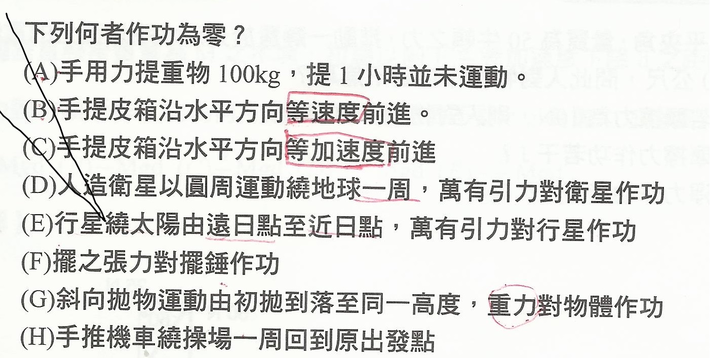 為何選項 (G) 考慮回到原來高度,但 (H) 不用考慮回到原點