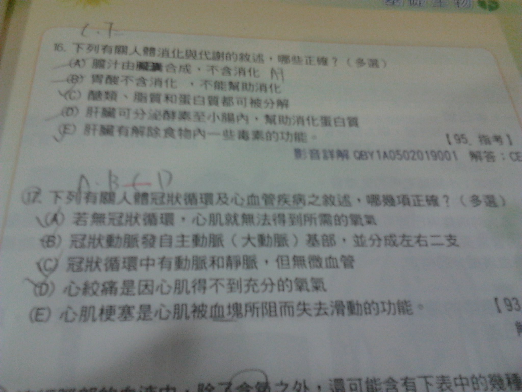第17題,C選項是?然後E選項是因為不是血塊而是反式脂肪倒勾堆積而使通道變小造成阻塞?