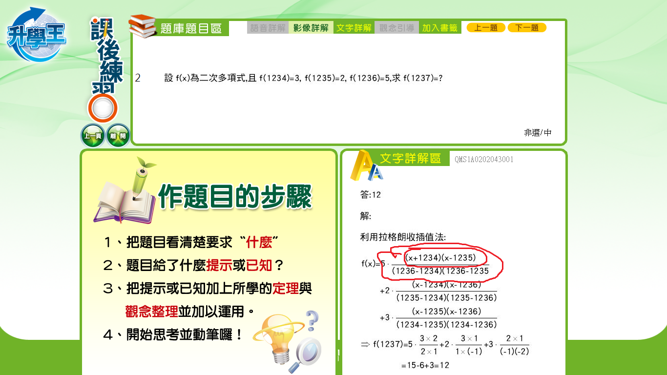 每次發問解題以一題為限,請標示解題題號,若無標示則以畫面第一題為準,若有多題題目發問,請另行發問。
