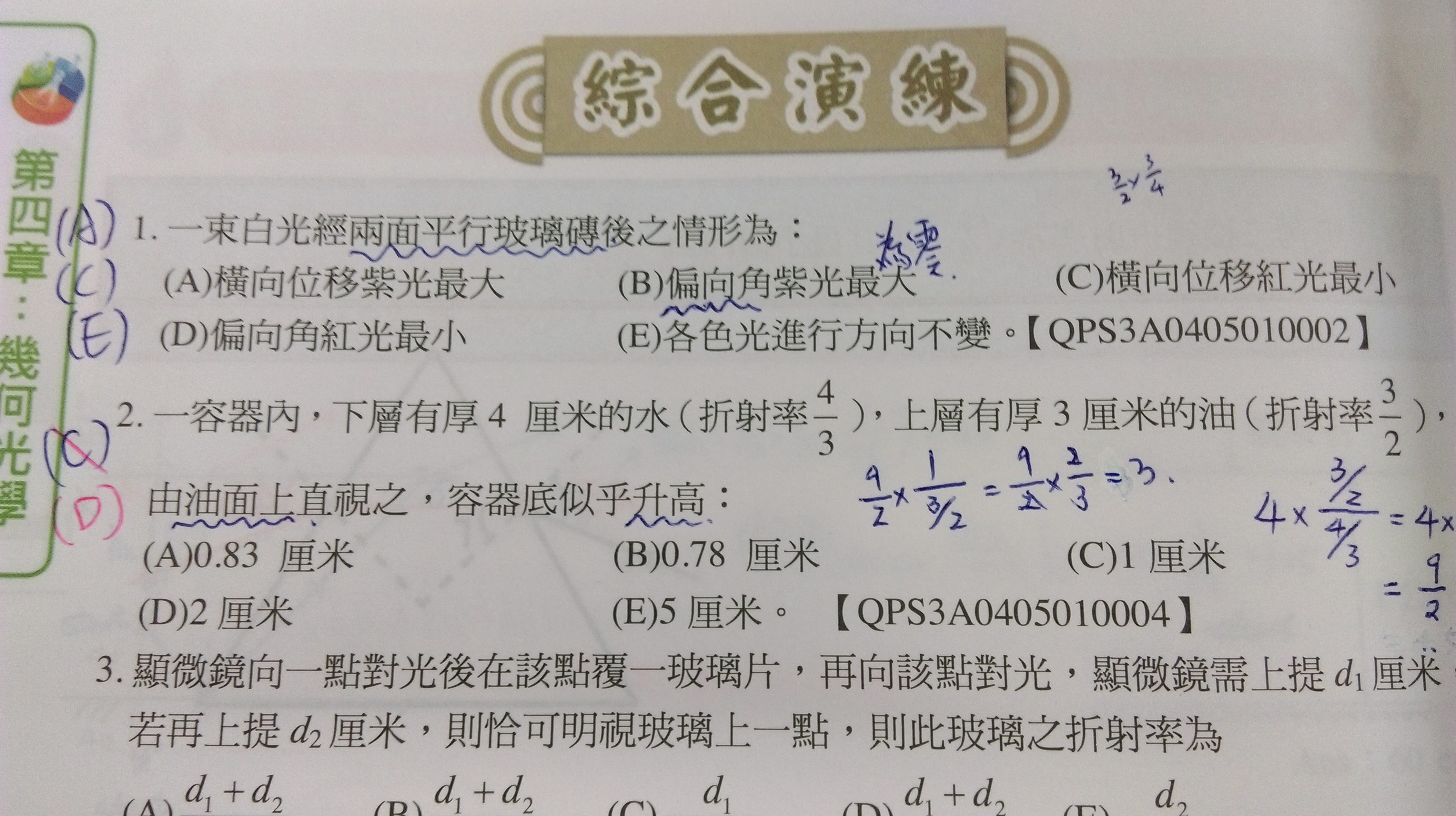 請問人眼看到的光線是怎麼個折射路線 能夠畫圖嗎?為何詳解是分開計算而不是先從某液體到油層再從油層到空氣呢?