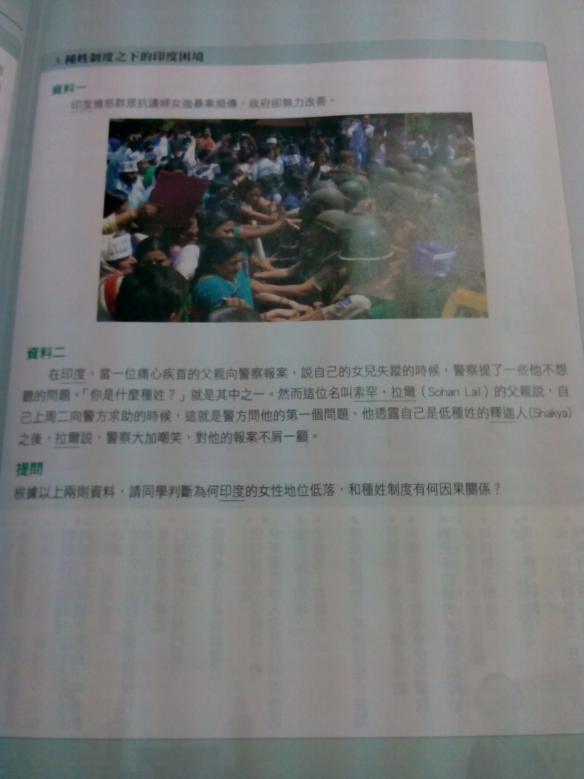 提問,根據上面資料,判斷印度女性為什麼地位低落,和種性制度有什麼關係