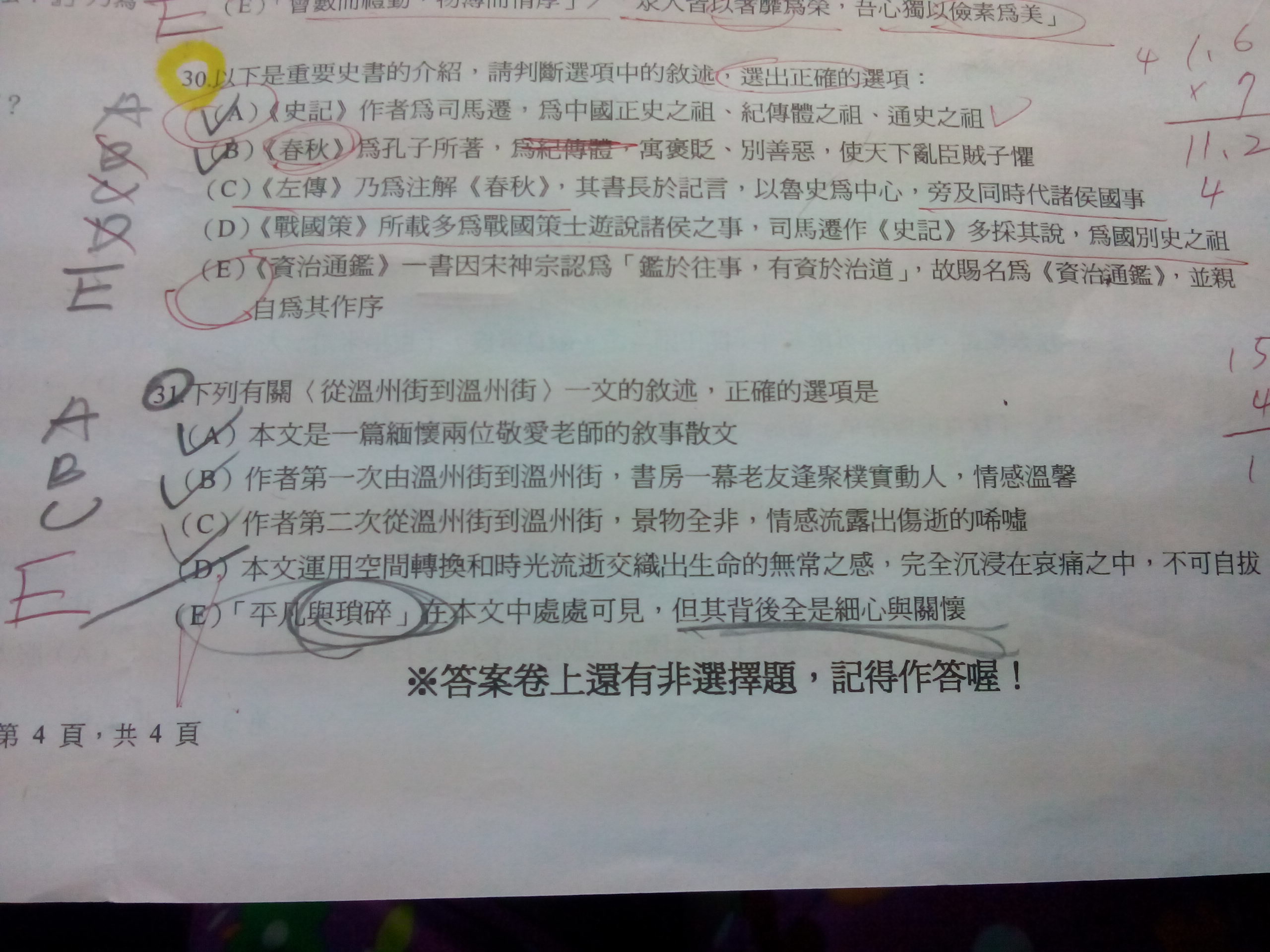 我要問用黃色蠟筆圈起來的第三十題的C,D選項錯在哪裡