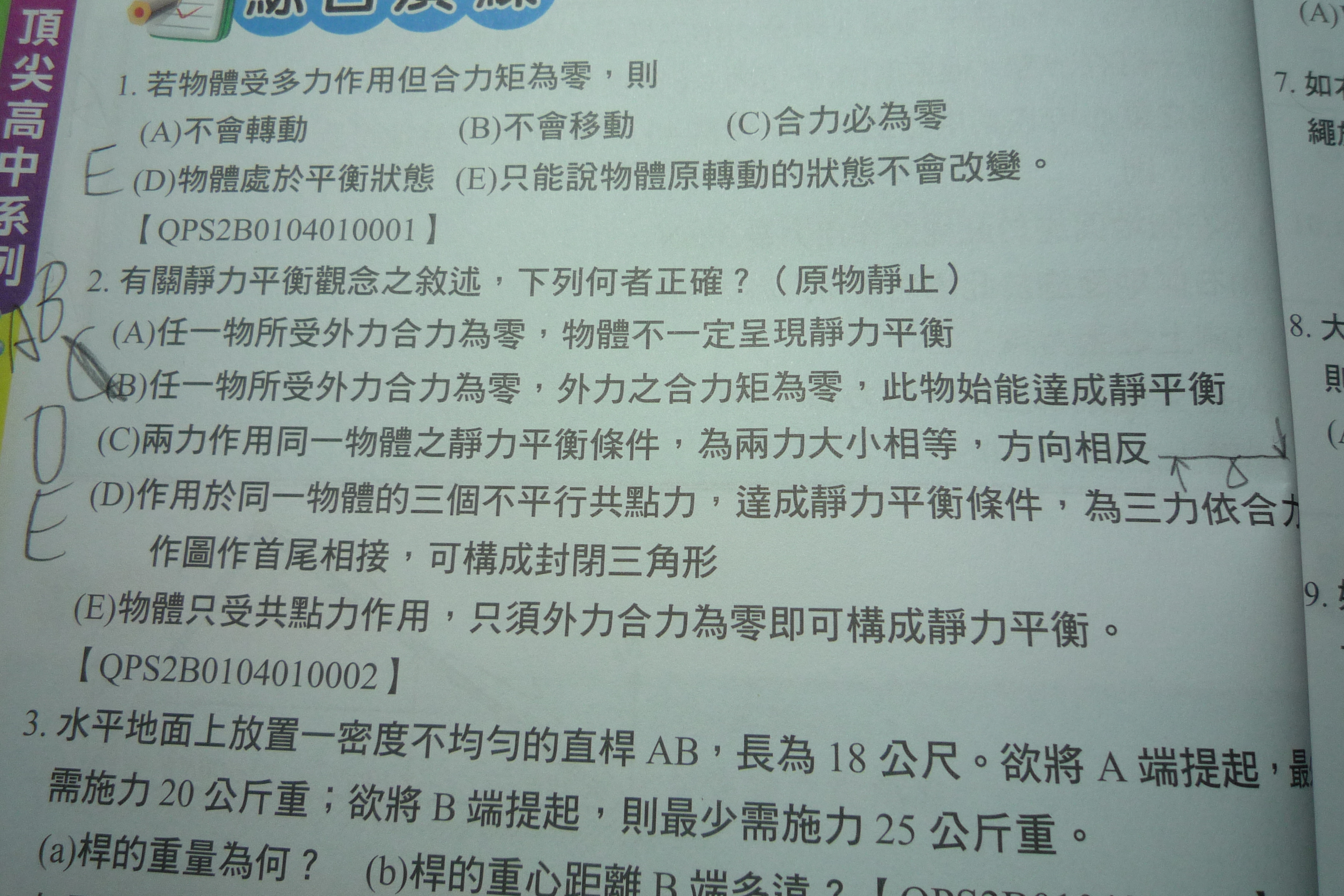 請問地二題的A,為甚麼A不對?合力為0不代表合力舉為0吧!請問是這樣嗎?